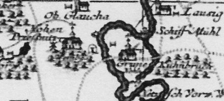 | FAKT IST, | dass es mit Sicherheit Zeiten gab, in der weder eine Brücke noch eine Fähre notwendig waren, weil Hohenprießnitz und Gruna auf der selben Seite der Mulde lagen. Die stark mäandrierende Mulde weist noch auf eine Landkarte von 1750 zwei gleichstarke Muldearme auf, von denen der östlich von Gruna verlaufende unterbrochen ist... |